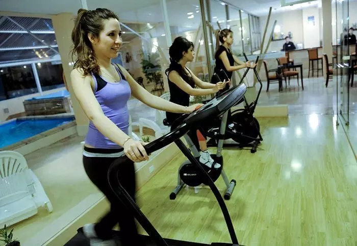 There is an outdoor pool and large gym for the hotel guests to use at their leisure.