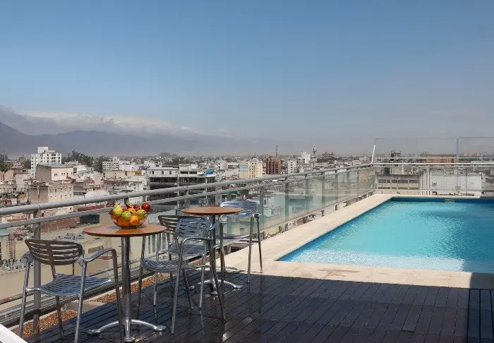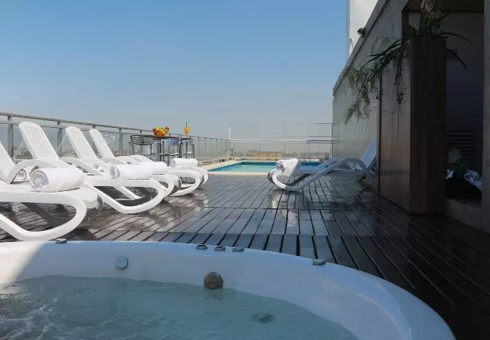 On the roof of the building, you can have a swim in the small heated pool and relax in the Jacuzzi with a drink in your hand and a fantastic view of the city.
