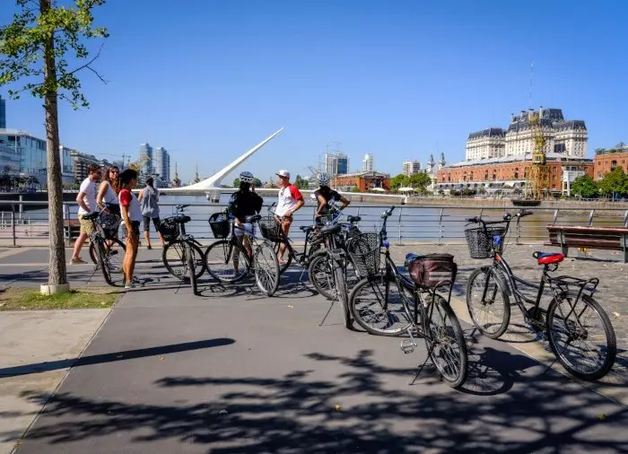 Among other places, you cycle past Puerto Madero, the new port area with its lovely cafés and restaurants. This is also where the beautiful Puente de la mujer footbridge is located. It’s a unique piece of Spanish architecture uniting old Buenos Aires with the modern, new district.