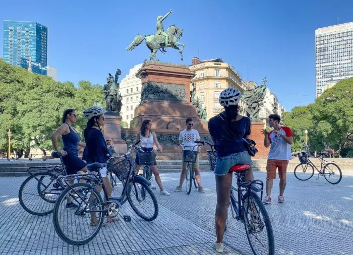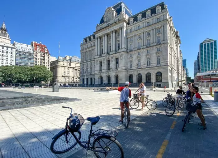 The last stop of the ride is at Plaza de Mayo square, where Argentina’s spectacular pink government building is located. From here, you cycle back to the starting point, where you drop off the bikes.
