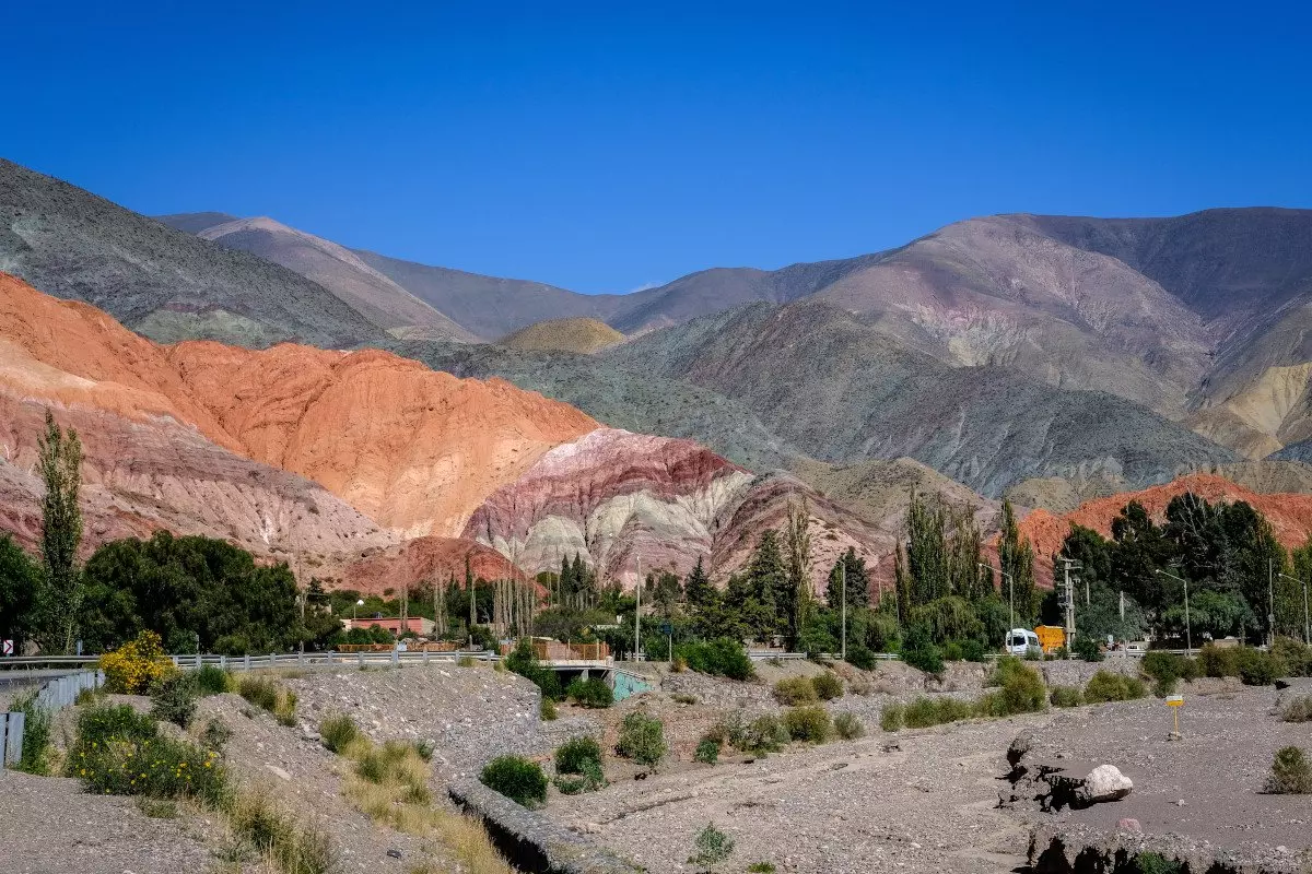 From the salt flat, the tour continues over the mountains to the pleasant town of Purmamarca. On the way, you will cross a pass at an altitude of 4,170 metres. The air up here is thinner and breathing can feel really weird. Sit back in your seat and enjoy the view over the mountains while driving along winding mountain roads down to Purmamarca, which is located at an altitude of 2,192 metres.
