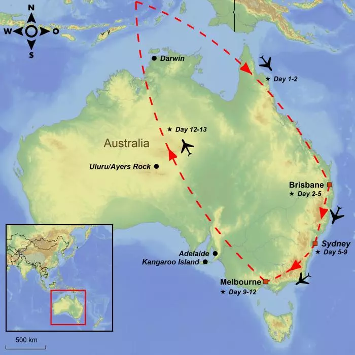 The tour takes you to Australia’s three largest cities: Brisbane, Sydney and Melbourne.