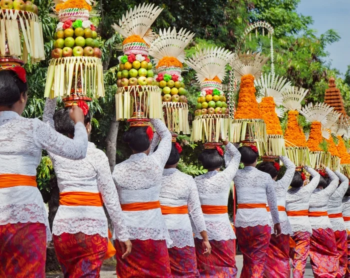 There are often ceremonial processions in the temples and streets, which are a fun and evocative experience. The Balinese are dressed in their traditional costumes, and lining the pavements are small baskets woven from banana leaves containing offerings and incense sticks to protect against evil.