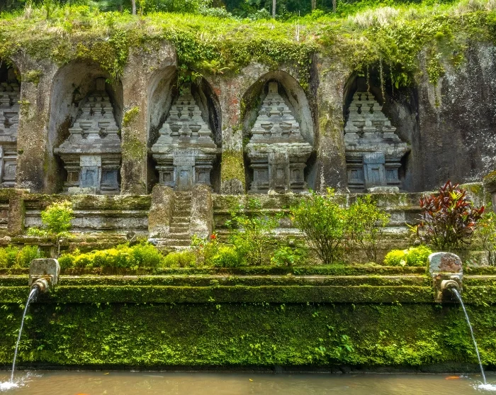 Before reaching Ubud, you will visit the Gunung Kawi temple complex, an often overlooked attraction. Built in the late 11th century, Gunung Kawi is one of Bali’s oldest temples. Gunung Kawi is set in a lush valley surrounded by jungle, and stairs take you past magnificent rice terraces and tall coconut palms down to the temple itself. The Pekerisan River, which has religious significance for Balinese Hindus, flows alongside the temple. Water passing through a sanctuary is said to be transformed into holy water. When you get to the river, a small stone bridge leads you across to the main attraction of the temple: the ancient royal tombs carved into the rocks. Here, you have time to walk around and enjoy the ancient, serene site.