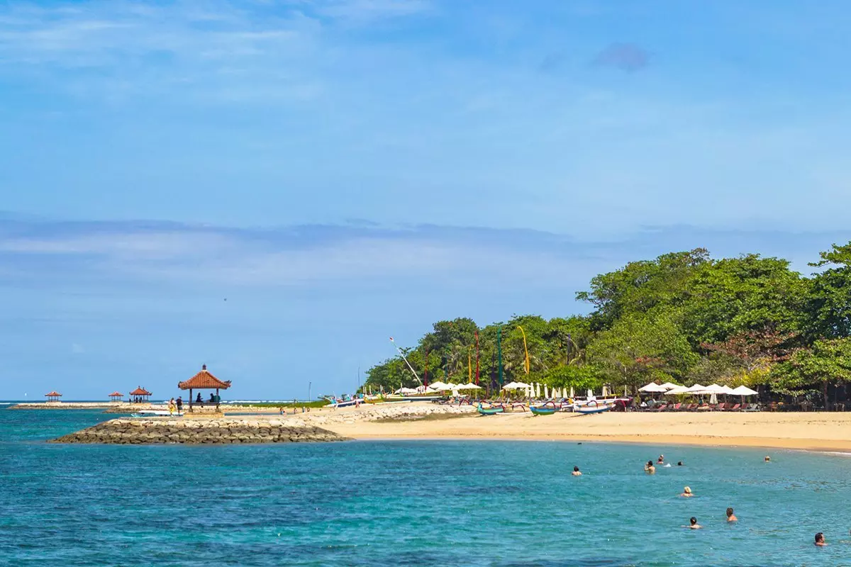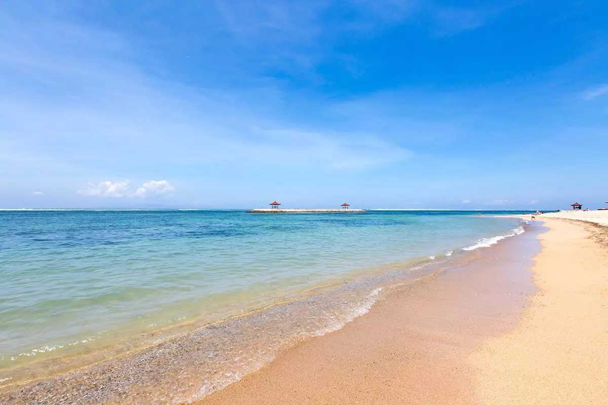 Sanur is Bali’s most popular beach town and has managed to maintain its pleasant, relaxing atmosphere. The town’s big draw is its 5 km long, wide and golden sandy beach, which is known for its calm waters and gentle waves. This is because the beach is protected by a coral reef a bit further out, making it extremely child-friendly. Here you can frolic in the warm water and enjoy the sun on a recliner or read a good book under the swaying palm trees.