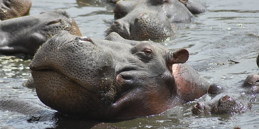 Despite their heavy-set appearance on land, hippopotamuses are surprisingly fast in the water and can be very territorial and aggressive. In fact, the hippopotamus is considered to be one of the dangerous land animals in Tanzania and Africa simply because it is so territorial, so don’t be fooled by its otherwise playful appearance.