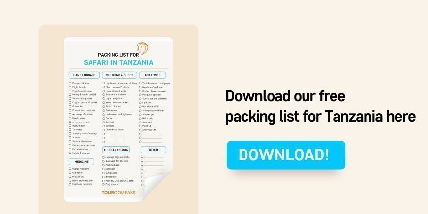 Use this packing list to tick off your clothes and equipment when packing your bag for your safari in Tanzania. If you dream of another safari destination, check our general packing list for safari in Africa.
