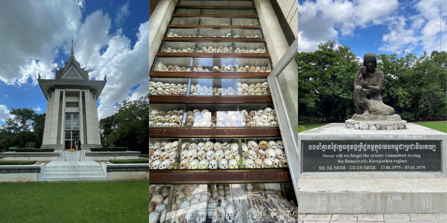 The highlight of Phnom Penh, however, is the visit to the S-21 museum and the “killing fields”. A visit that left a big impression on us. Here you get a chilling but at the same time fascinating insight into the atrocities committed by the “Khmer Rouge” against their own people during 1975 – 1979. S-21 was one of approximately 170 security prisons established by the “Khmer Rouge” used for torture and killing during their regime. It was the largest prison built and more than 18,000 people were tortured and killed here. Only eight people survived, and we were lucky enough to meet two of the survivors, as they were visiting the day we were at the museum.