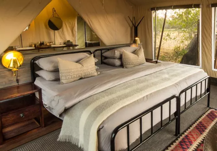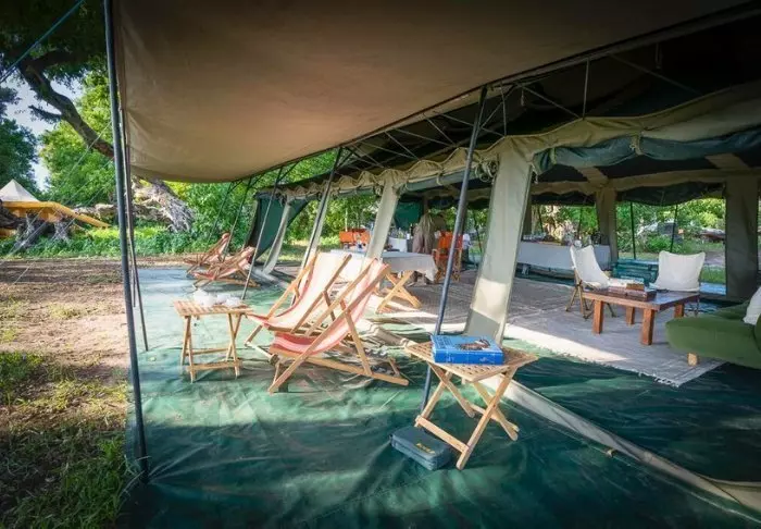 Awaiting you at the two camps, which are located close to each other, but still function completely independently of each other, are a total of 14 fabulous tents, which ARE all classic safari tents, but with (solar) electricity, an en suite bathroom and a private outdoor shower with hot water. From your tent, you have a view of the river or the open savannah, where you may be lucky enough to see the animals pass by during the day. Meals are enjoyed in the cosy mess tent or under the open sky, and at night, you will almost certainly be woken up by animal sounds permeating the canvas walls of your tent.
