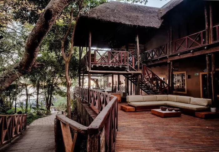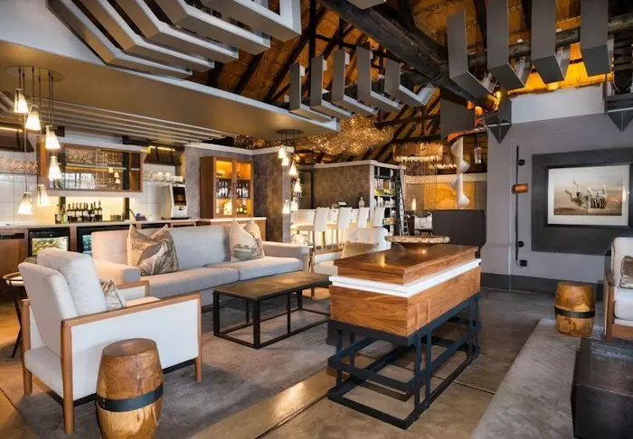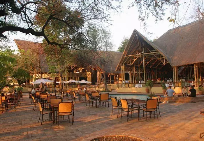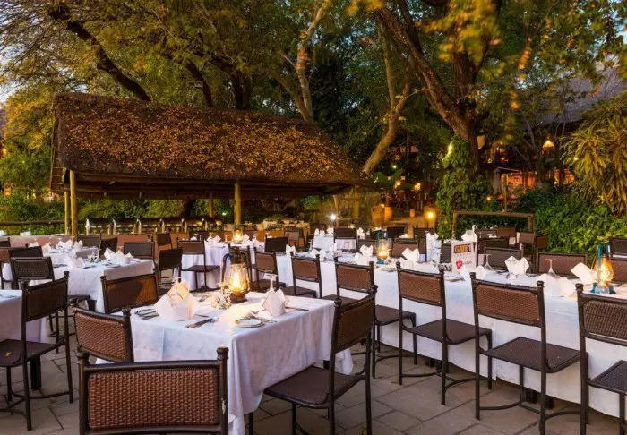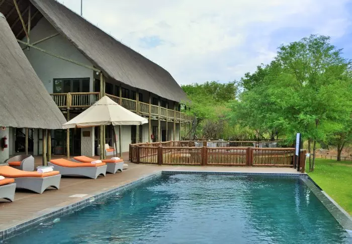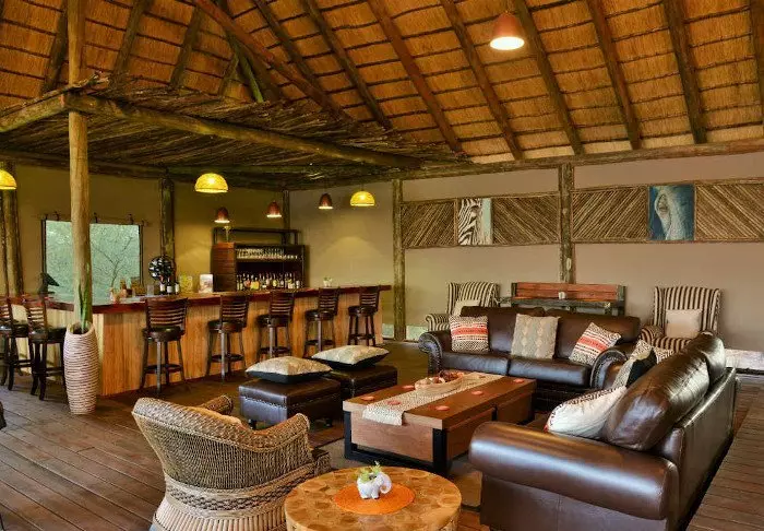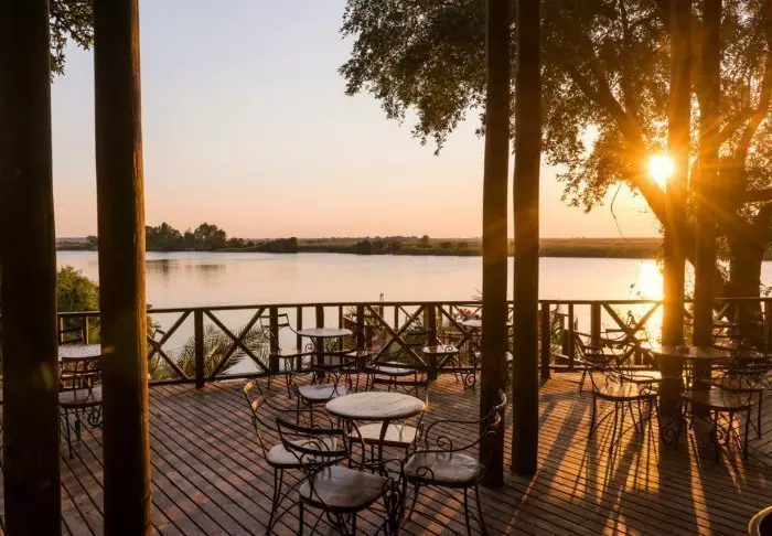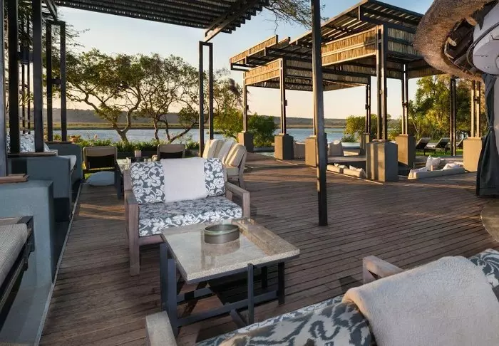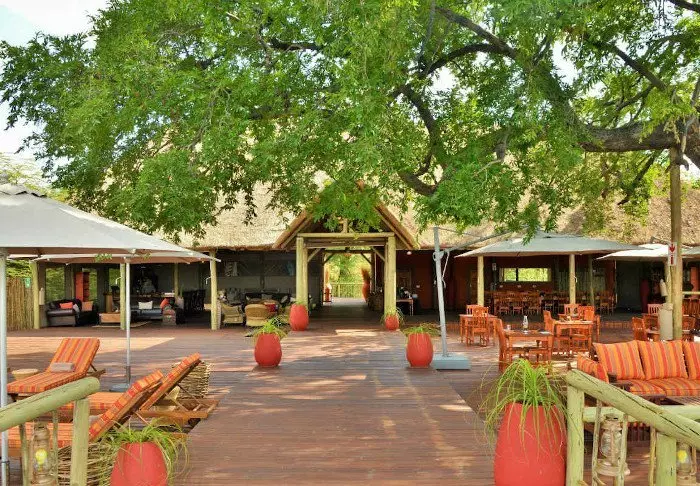The lodge has two restaurants, a spa and two bars, one of which is perfect for a “sundowner” overlooking the river and the sun going down over the national park.