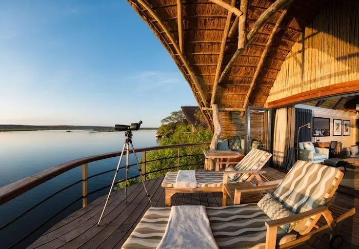 All 15 villas are built on stilts on the edge of the Chobe River. The generous balconies offer a unique view of the river and Sedudu, a large island in the middle of the river. You don’t actually have to move from your terrace while you’re here. You could sit here all day long, watching life on the river go by: elephants bathing, boats sailing tourists past, hippos splashing and birds perched on the terrace railings. If you get thirsty, look no further than your own minibar filled with chilled drinks.