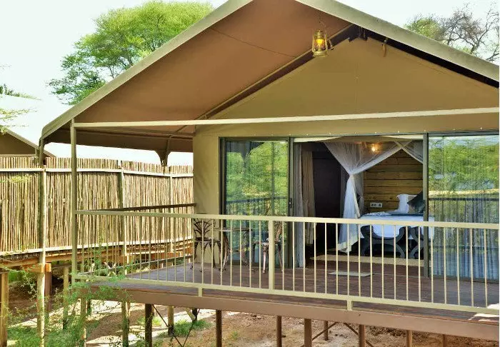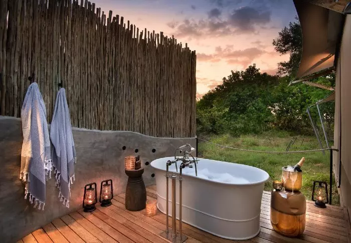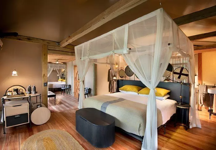 The 16 tents all have an en suite bathroom with a free-standing bathtub, air conditioning, tea/coffee making facilities and a private balcony. The tents are erected on platforms that stand on stilts, which allow the air to circulate under the tents. All the tents are the same inside – the difference lies in whether you want a river view or a view of the garden.