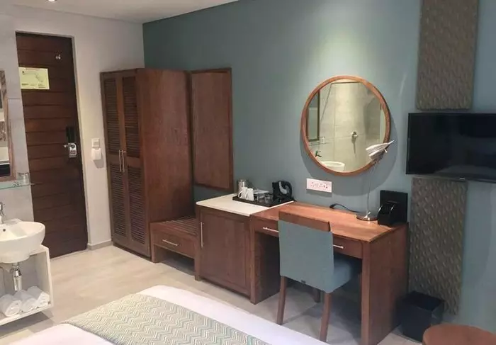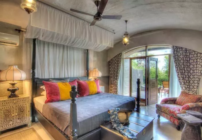 The 60 spacious rooms all have air conditioning, ceiling fans, flat-screen TVs, tea and coffee making facilities, fridges and mosquito nets over the beds.