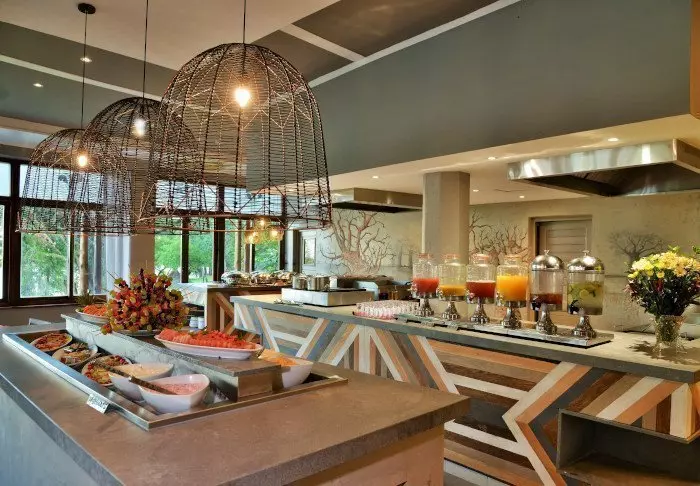 The restaurant serves both an à la carte menu and a buffet, and the food is delicious and beautifully cooked – often using local produce.