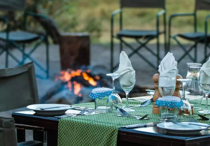 The meals are enjoyed under the stars, and the food is good! Freshly made, flavourful and satisfying – in fact, you work up a big appetite when you are on safari. Of course, both cold beer and wine are served with the food, if you wish, and there are tea and coffee on the pot throughout the day.
