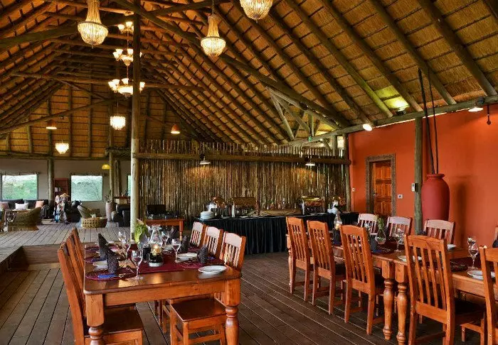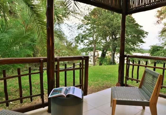 Breakfast is enjoyed overlooking the river – and after the day’s safari, you can enjoy the last rays of the day from the bar, which also has a view of the river. It’s quite enchanting to sit in the waning light and hear the animals grunting in the dark river.
