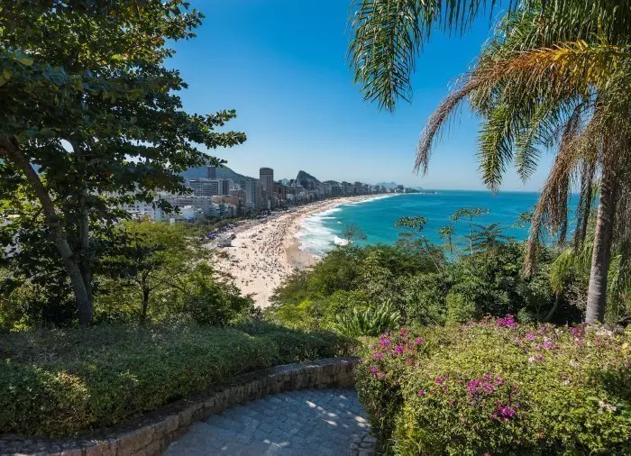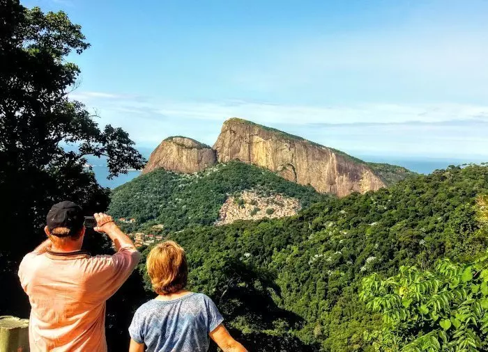 The first stop on the trip is the Penhasco Dois Irmãos city park, from where you can enjoy the breathtaking views of the Morro Dois Irmãos rock formation on one side and of the city and the Ipanema and Leblon beaches on the other.