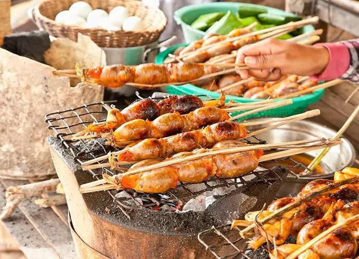You are picked up at the hotel and driven a short distance out of town, where you will have a chance to taste a wide range of different traditional specialities and authentic snacks. Try foods such as grilled quail eggs, deep-fried grasshoppers and tarantulas and more that are considered delicacies. There will also be noodles, different types of grilled meat, exotic fruit, Khmer cakes and cold drinks such as beer or soda water. You continue by tuk-tuk to the renowned Pub Street, the vibrant and colourful street that forms the centre of life in evening in the city. The trip ends with a cocktail in the area around Pub Street at the Miss Wong Cocktail Bar or the Sokkhak River Lounge.