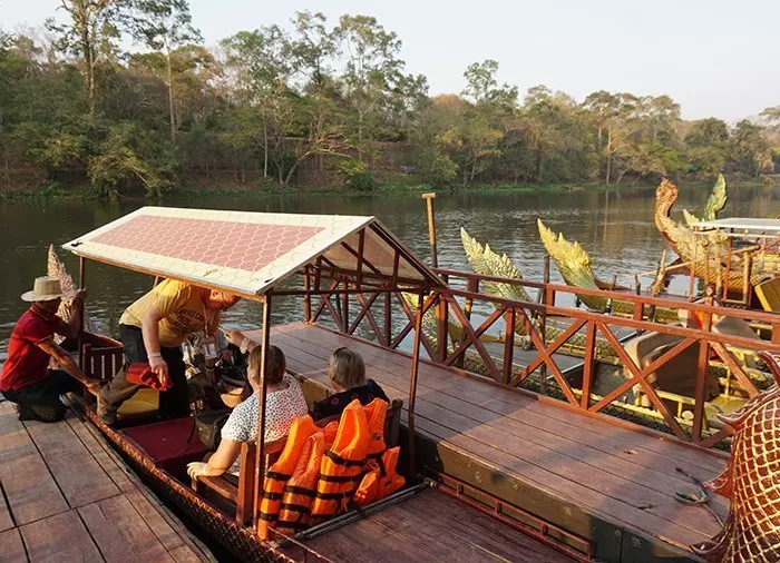 A sense of calm settles over you as you serenely conclude your day with a beautiful boat ride in a gondola, enjoying the sunset at Angkor Thom with a small refreshment on-board. You ride over the very wide moat that encircles all of Angkor Thom, with lush vegetation growing on each side. This is where the locals take a combined evening dip and fishing trip. You are picked up at your hotel and are driven back after the boat ride.