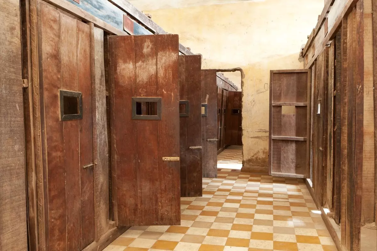 You continue to Wat Phnom pagoda, the city’s main temple, which is set on a small tree-covered hilltop, where you always find a crowd of believers. No visit to Phnom Penh is complete without a visit to Tuol Sleng Genocide Museum S-21, a museum about the Khmer Rouge genocide. S-21 stands for Security Prison 21, a prison set up by Pol Pot in 1975 in the buildings that previously housed a high school.