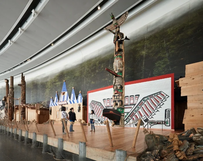 Step into the breathtaking Grand Hall, an architectural marvel with sweeping curved windows offering magnificent views of Parliament Hill. Stroll along the welcoming coastal promenade, where you’ll encounter six distinctive Indigenous houses and the world’s largest collection of totem poles. Along the way, admire Bill Reid’s plaster masterpiece, “Spirit of Haida Gwaii,” and Robert Davidson’s striking bronze sculpture, “Raven Bringing Light to the World.” Both artworks beautifully celebrate the rich traditions and stories of Canada’s Indigenous peoples. The exhibitions invite you to delve deeper into their vibrant heritage, and in the newly opened Canadian History Hall, you’ll discover over 15,000 years of history, brought vividly to life through engaging exhibitions and plenty of hands-on, interactive features.