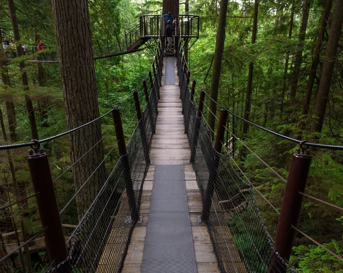 Join us on this tour for the chance to experience nature in three truly unique ways at Capilano Suspension Bridge Park. Begin your adventure with a stroll across the world-famous suspension bridge, hanging 70 metres above the Capilano River – an iconic attraction that’s been thrilling visitors since 1889.