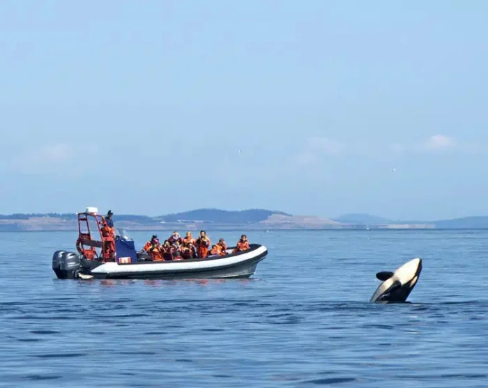 Join a whale watching tour from Victoria, where passionate marine biologists will guide you out to discover the abundant wildlife in the surrounding waters. The waters of Juan de Fuca and Haro are home to orcas, humpback whales and, quite often, minke whales and grey whales. During the peak season from April to October, there’s more than a 95% chance of seeing whales.