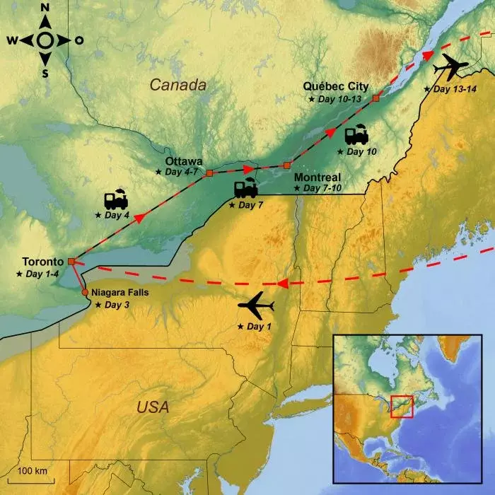 After a fantastic day surrounded by breathtaking natural beauty, you’ll be driven back to your meeting point in Toronto, arriving late in the day.