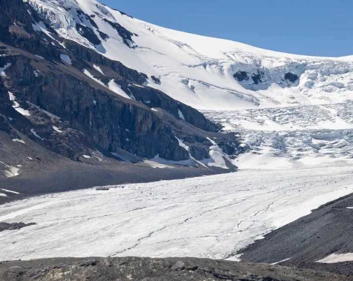 Just as you’re enjoying the glacial scenery from the comfort of your car, it’s time to wrap up warm and step out onto the Athabasca Glacier itself*. Don’t worry – the drive up to the glacier is left to the experts. Your guide will ensure you reach your destination safely in an all-terrain vehicle known as an “Ice Explorer”, departing from the Columbia Icefield Discovery Centre with your fellow adventurers. Along the way, your guide will share insights into the fascinating geological processes that shaped the area, and you’ll have the chance to step out onto the ancient ice, formed over 400 years ago. Standing on the Athabasca Glacier, surrounded by the majestic Rocky Mountains – it’s a moment you won’t forget.