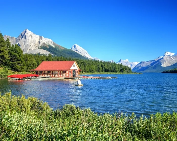 Among the park’s many highlights is the breathtaking Maligne Lake, renowned for its dazzling azure waters framed by soaring peaks and glaciers. Maligne Lake is a popular spot in the summer months, so we recommend visiting earlier in the day. The drive from Jasper’s main town to Maligne Lake is just under 48 km, and there are plenty of interesting stops along the way. En route, you can marvel at the Rocky Mountains’ deepest gorge, Maligne Canyon, as well as the unique Medicine Lake.