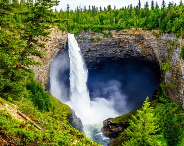 Wells Gray Provincial Park is especially famed for its powerful waterfalls. Prepare for a breath-taking moment when you stand before Canada’s fourth highest waterfall, Helmcken Falls, which plunges 141 metres into a canyon, trailing a shimmering mist in its wake (approx. 45 minutes from Clearwater).