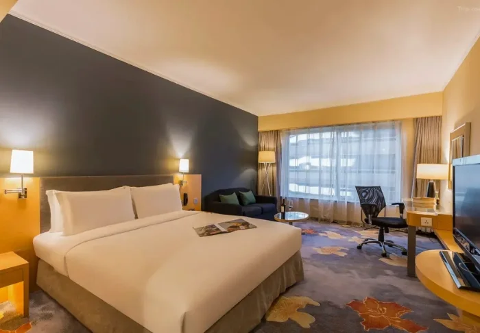 You’ll stay in a 32 m² standard room with city views. The room comes equipped with air conditioning, a flat-screen TV, a safety box, a minibar, an electric kettle, and Wi-Fi. Complimentary bottled water is provided throughout your stay. The room is furnished with either a double bed or two single beds, as well as a sofa and a desk, giving you plenty of space to unwind after a day of sightseeing. The bathroom features a shower and is stocked with toiletries, a bathrobe, slippers, and a hairdryer.