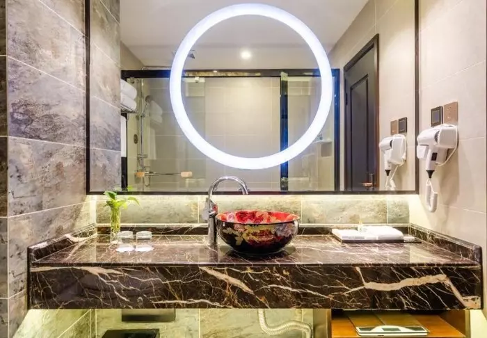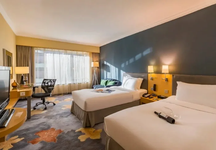 The hotel has a total of 142 elegant rooms furnished with elegant dark wood furniture and decorative carpets and paintings. All rooms have Wi-Fi, TV, air conditioning, a telephone, a fridge and a safe, not to mention an en suite bathroom with a hair dryer and toiletries.