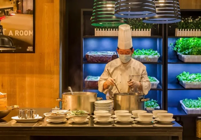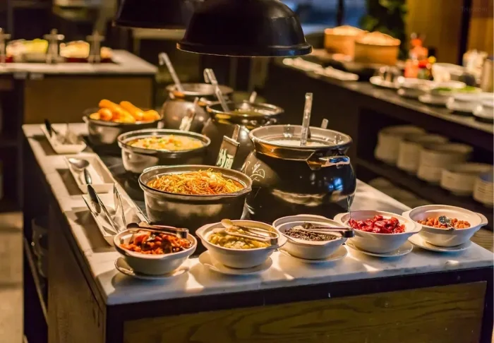 In the hotel’s breakfast restaurant, a large and delicious selection of both Western and Chinese-inspired food awaits you every day in the large breakfast buffet.
