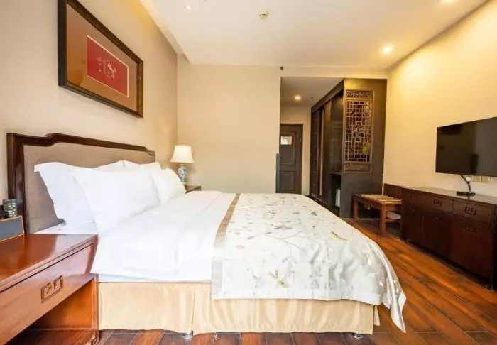 The rooms are elegantly decorated in Chinese style with wooden furniture and fine details. They are all equipped with modern facilities such as air conditioning, Wi-Fi, safety box, tea and coffee making facilities and a flat-screen TV. The bathrooms are modern and newly renovated. Here you will find bathrobe, slippers, hairdryer and sundry toiletries.