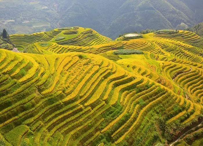 Ping’an is famous for its location in the midst of Longji’s stunning rice terraces, which stretch as far as the eye can see. Longji means dragon’s back, and that is exactly what the curved rice terraces look like. It’s not difficult to understand why they are said to be the world’s most beautiful and why they attract poets, photographers and tourists from near and far. They are massive, breathtaking and overwhelming! The terraces, which cling to the steep mountain slopes at an altitude of 300–1100 metres, were created by the ancestors of the Zhuang tribe