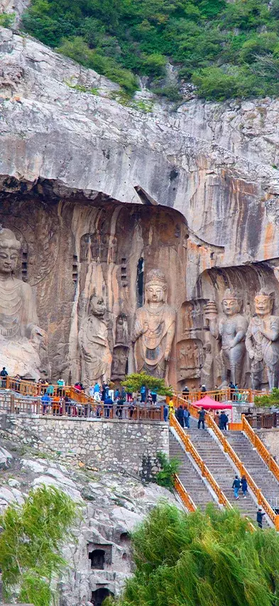After breakfast, you check out of the hotel, and a guide and driver will be waiting to drive you to the incredible Longmen Grottoes. The grottoes are some of the finest and most impressive examples of Buddhist rock carvings in China, scenically situated on the Yi River.