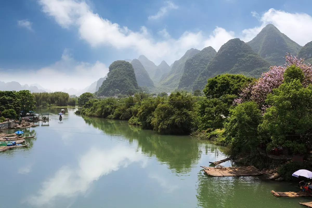 After breakfast, you’ll be collected from your hotel and driven to the train station, where you will board the high-speed train to Yangshuo. This is an incredibly scenic journey, taking you through landscapes dotted with lush green mountains, waterfalls, and small villages – sights you would miss if you flew. You’ll cover the roughly 1,200 km distance in just 7 hours. Upon arrival in picturesque Yangshuo, a guide and driver will be waiting to welcome you. Together, you’ll be transferred to your hotel, which is about a 30-minute drive away.