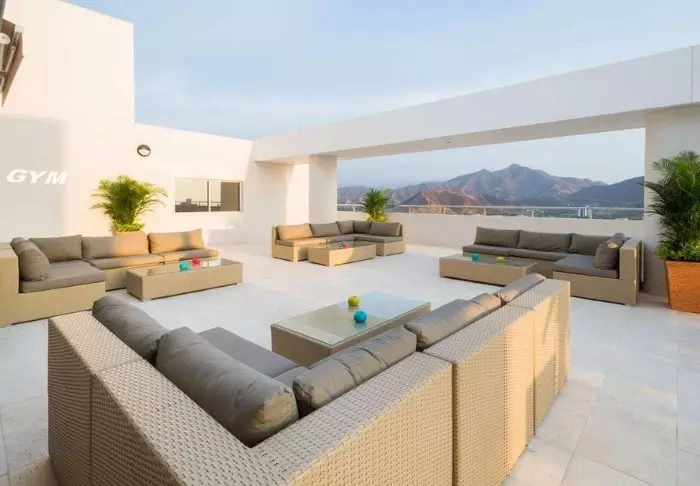 On the hotel’s rooftop terrace, you can relax in the jacuzzi or soak up the sun while taking in the stunning views of the Medellín skyline.