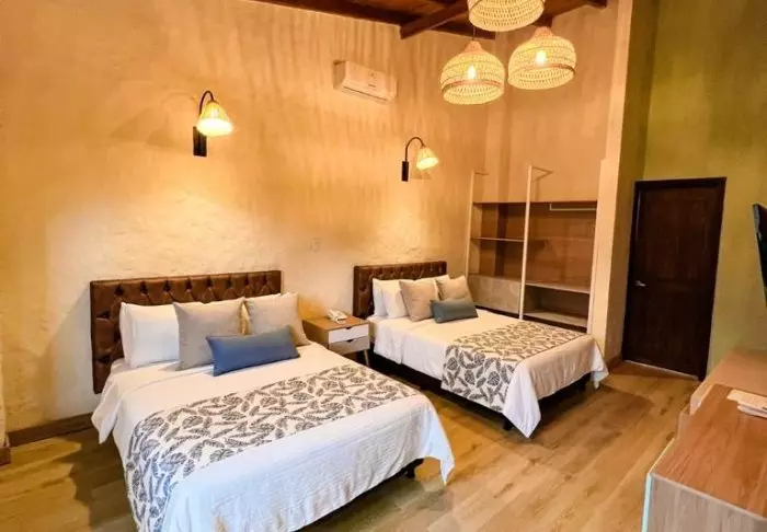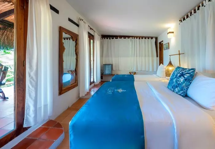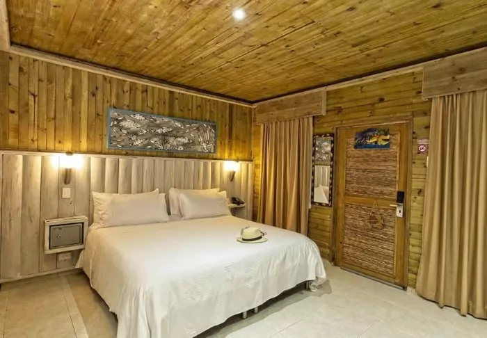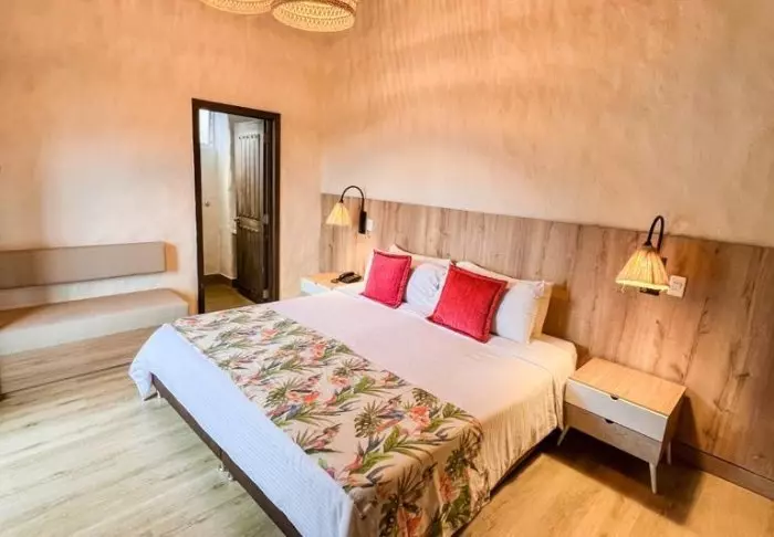 With just 42 rooms, the hotel guarantees a cosy and intimate stay. Each room is constructed with wood and bamboo, perfectly complementing the natural environment. The rooms are equipped with air conditioning, Wi-Fi, satellite TV, a minibar/fridge, a safety box, and a private bathroom with toiletries.