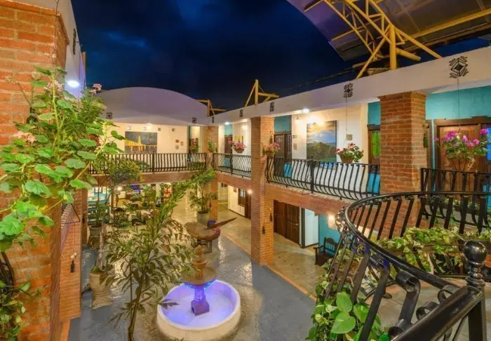 Salento Real Hotel is located in the heart of Colombia’s coffee region in the cosy town of Salento, just 10 km from the Cocora Valley. Right outside the hotel, you have the opportunity to stroll through the cosy streets with their beautiful, colourful houses and soak up all the impressions.