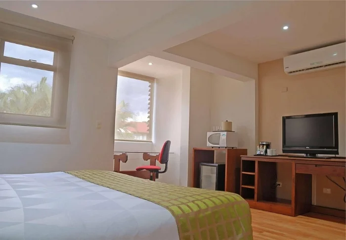 The hotels feature modern interiors with bright colours, tiled floors, and colourful pictures on the walls. All rooms are equipped with air conditioning, a ceiling fan, a flat-screen TV, a safe, and an en suite bathroom with hair dryer and toiletries. There is free Wi-Fi throughout the hotel.