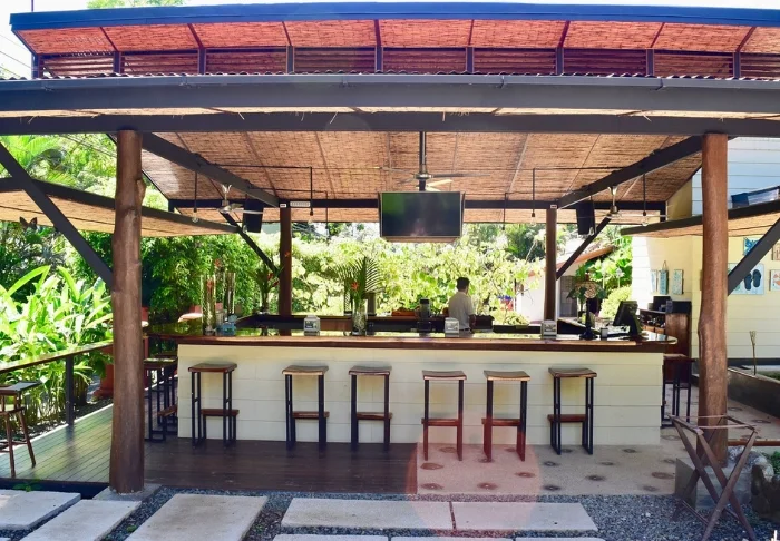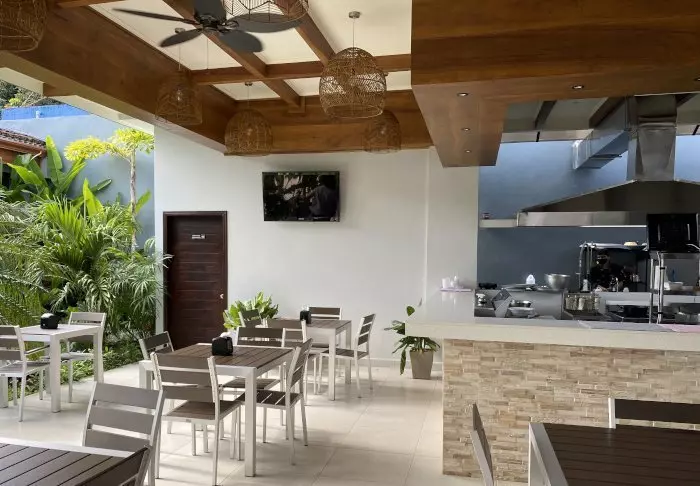 The cosy, thatched restaurant and bar serves tropical breakfasts, refreshing drinks and Argentinian cuisine combined with Costa Rican ingredients and taste sensations.