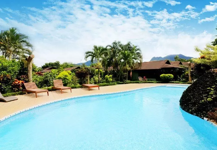 A relaxed atmosphere prevails here, where you’re guaranteed to feel at one with nature. The hotel is surrounded by lush rainforest and has a cosy pool area where you can enjoy a refreshing dip or a cold drink on a sun lounger amidst palm trees and exotic flowers. It is a small hotel with just 17 rooms, all of which offer air conditioning, a ceiling fan, a minibar, a safe, a hair dryer, a TV, coffee/tea making facilities and an en suite bathroom.