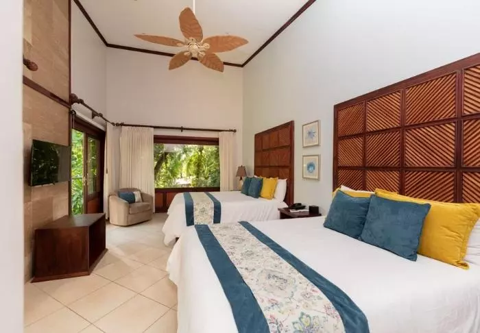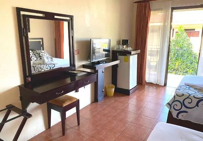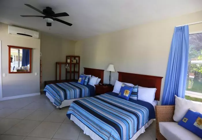 The hotel restaurant overlooks the beautiful tropical garden, which you can enjoy while having your breakfast served. There are two swimming pools in the more private part of the garden, where you can take a refreshing dip or relax in a sun lounger. You may even be lucky enough to see monkeys, humming birds and iguanas in the garden.