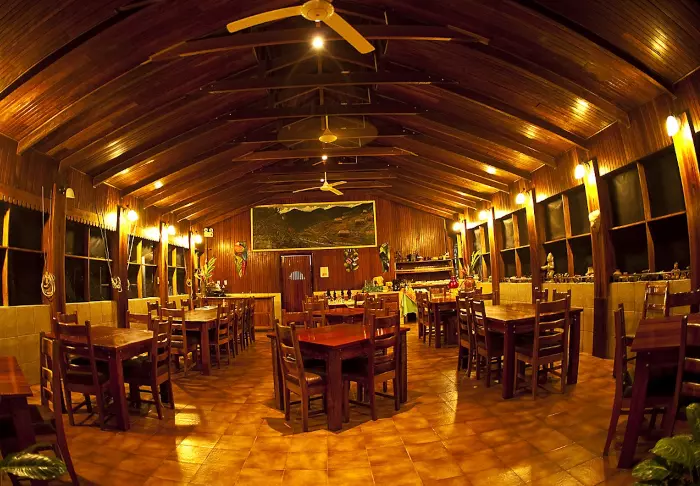 At the restaurant, you can order traditional Costa Rican dishes and European dishes made from local ingredients while enjoying the views of the lush nature surrounding the lodge. This is also where your breakfast (included) is served.