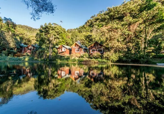 The lodge’s rustic, wooden cabins are very much in harmony with the scenic surroundings. The simply appointed rooms have wooden furniture, a TV, a safe and an en suite bathroom There is free Wi-Fi at the lodge. The room’s cosy balcony is the perfect place to relax to the sound of the nearby animals and enjoy the view of the surrounding garden and mountains.