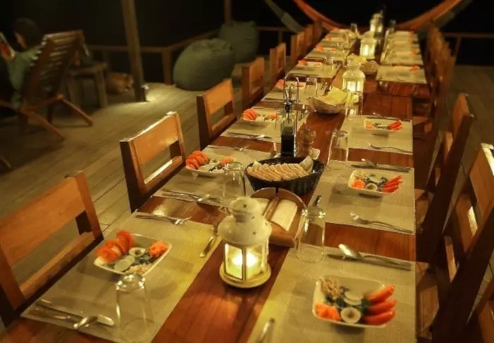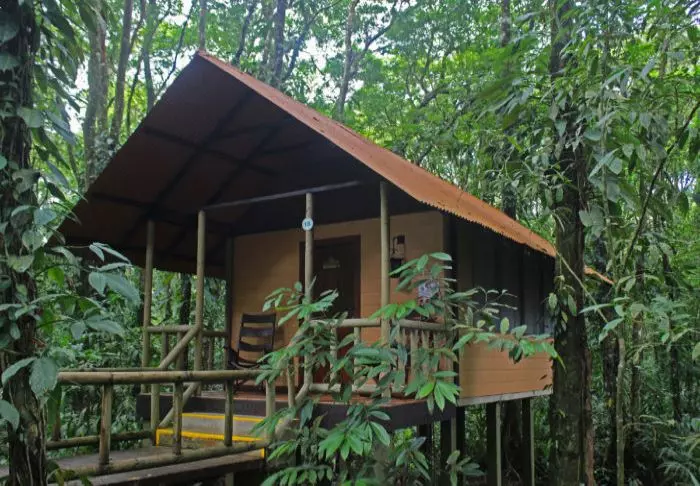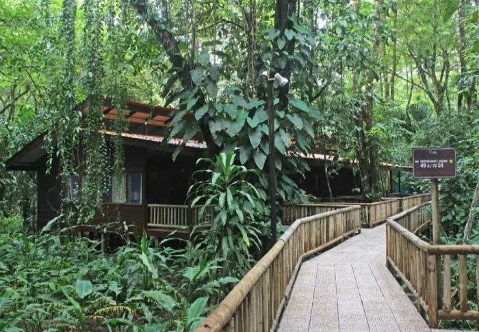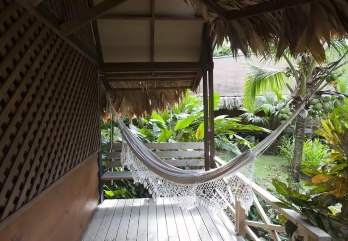 The lodge has 28 rooms, all equipped with air conditioning and hairdryers. Each also has a veranda with a hammock and a rocking chair, from which you can enjoy the tropical gardens and the sounds of the forest.
