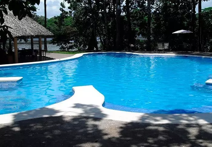 The hotel has a delightful pool area with recliners, perfect for relaxing, enjoying the verdant surroundings and listening to the varied noises of the forest.