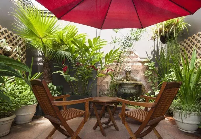 Arranged over 2 floors, the hotel has just 24 rooms, all of which have a private terrace or balcony overlooking the lush garden or one of the two small pools. The rooms are brightly coloured and of a slightly older character, but you have everything you need such as a TV, a ceiling fan, air conditioning, a fridge, a safe and your own bathroom.